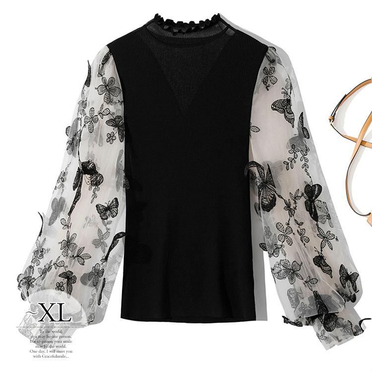 メーカー包装済 トップス セーター ニット リブニット 花柄 蝶 刺繍 シアー 透け感 トレンド 上品 ブラック ナチュラル 母親 おしゃれ シンプル Rcm32 新着商品 Technet 21 Org